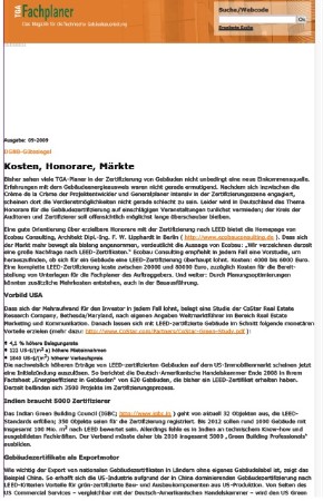 eine große Nachfrage nach LEED-Zertifikaten.“ Ecobau Consulting empfiehlt in jedem Fall eine Vorstudie, um